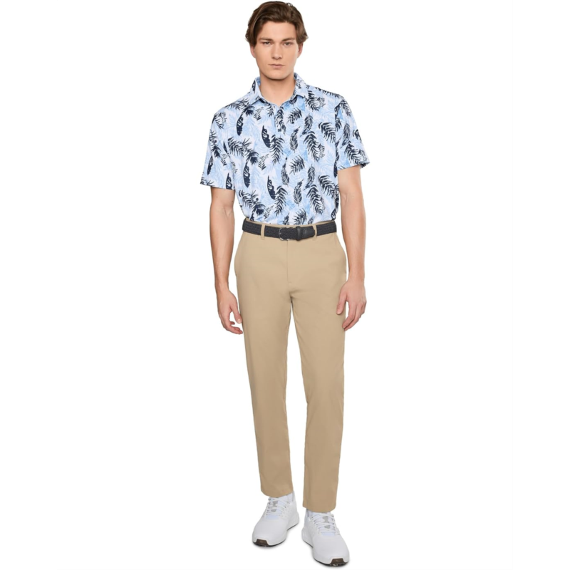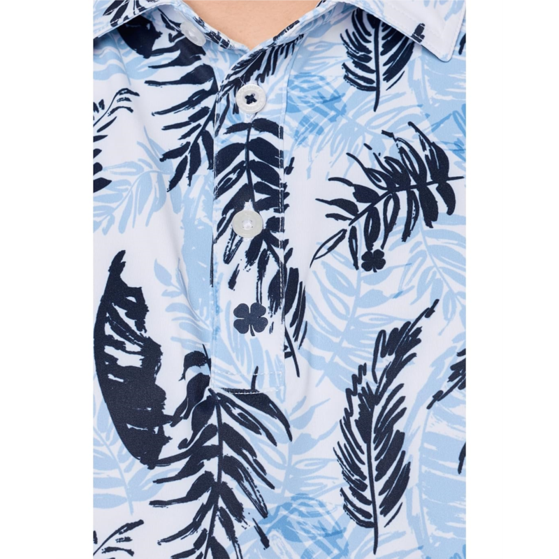 - The Black Clover Hidden Clover Polo features a sophisticated style, paired with advanced Dry-Tech Performance technology. Designed to wick moisture and dry quickly, it offers breathable, wrinkle-resistant comfort with an exceptionally soft feel-keeping you cool, comfortable, and effortlessly stylish throughout the day. This shirt features collared neckline with three buttoned placket, short sleeves, allover palm leaf pattern, and straight hem.