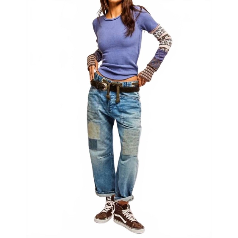 [US] Free People womens all in cuff top in indigo combo