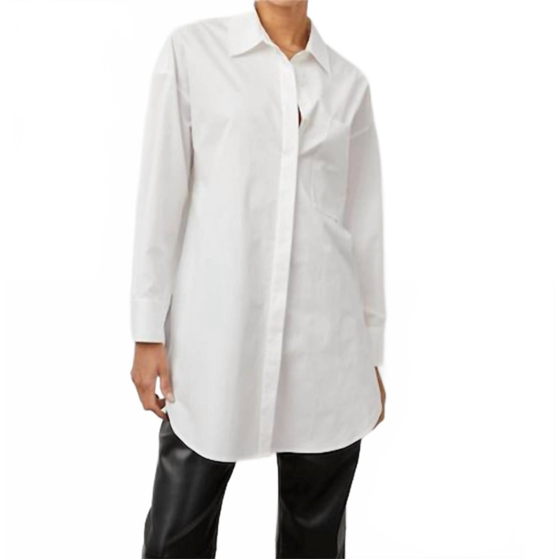 Perfectly tailored and soft to the touch.Meet the Women''s Joey Top by Rails, a minimalist button-down shirt perfect for spring and your next vacation. Featuring long sleeves and a classic collar, this versatile top is crafted from lightweight crisp cotton poplin in a pristine white solid color. Its oversized silhouette is highlighted by a dropped shoulder and an exaggerated front pocket, offering both style and functionality. Closure - Button closure.