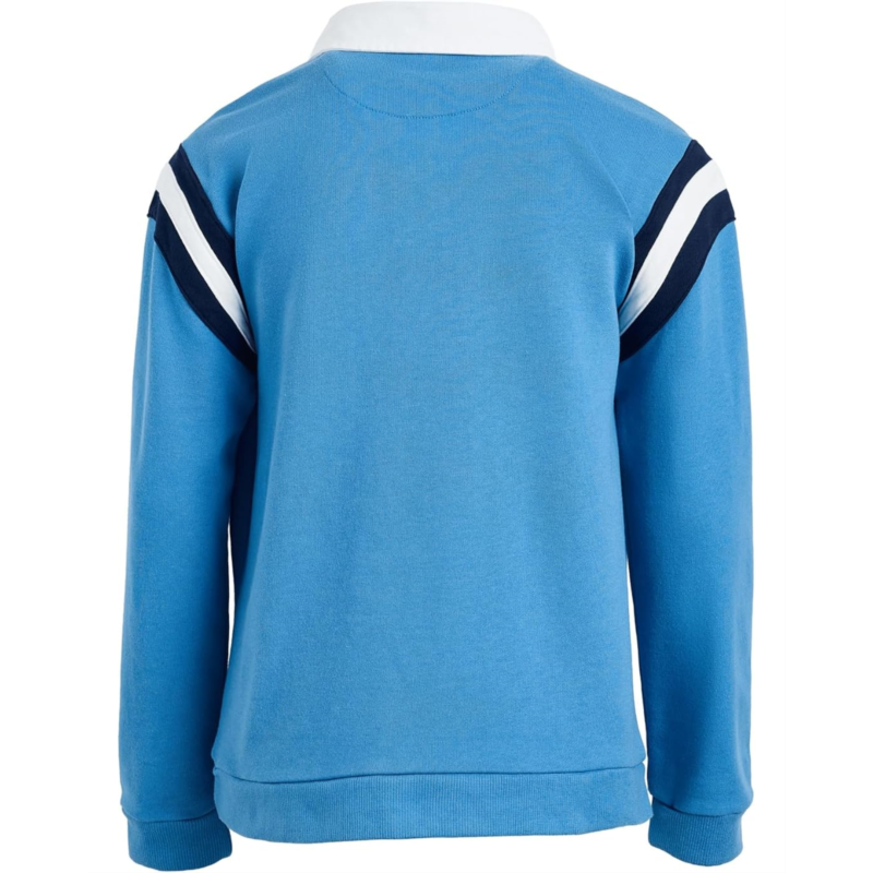 Janie and Jack Pieced Polo Sweatshirt: A smart-meets-casual layer with everyday comfort. This pieced polo sweatshirt features a classic collar with a three-button placket and color-blocked design for a polished look thats still easy to wear. Soft fleece fabric keeps them warm, while ribbed trims help maintain a neat fit. A FOREVER KIND OF LOVE. We make clothes that last.