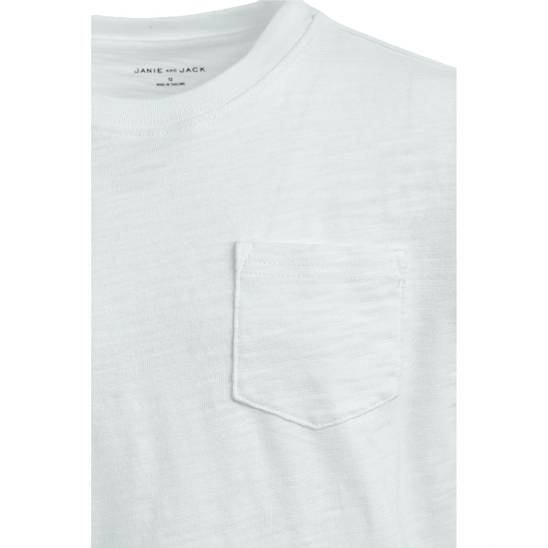 The Janie and Jack Solid Pocket Tee is a timeless everyday essential designed with comfort and classic style in mind. It has a crew neckline, short sleeves, and a straight hem. A FOREVER KIND OF LOVE. We make clothes that last.
