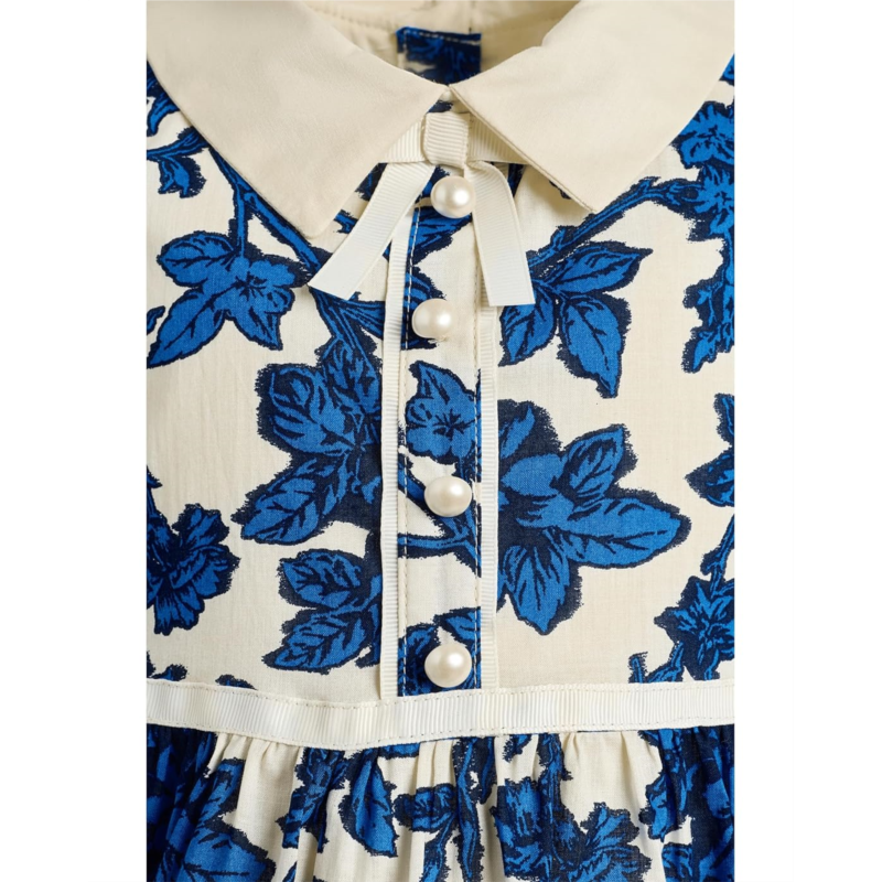 Let your kiddo enjoy fun playdates in style wearing the Janie and Jack Floral Collar Dress. Designed with a collared neckline for a polished finish, it features short puffy sleeves that add a sweet, classic touch. The dress showcases a floral print throughout, while pearl buttons at the front elevate the look with a refined accent. A buttoned back closure ensures ease of dressing and a secure fit.