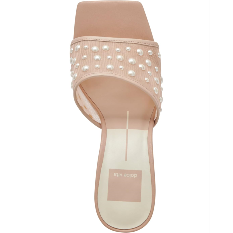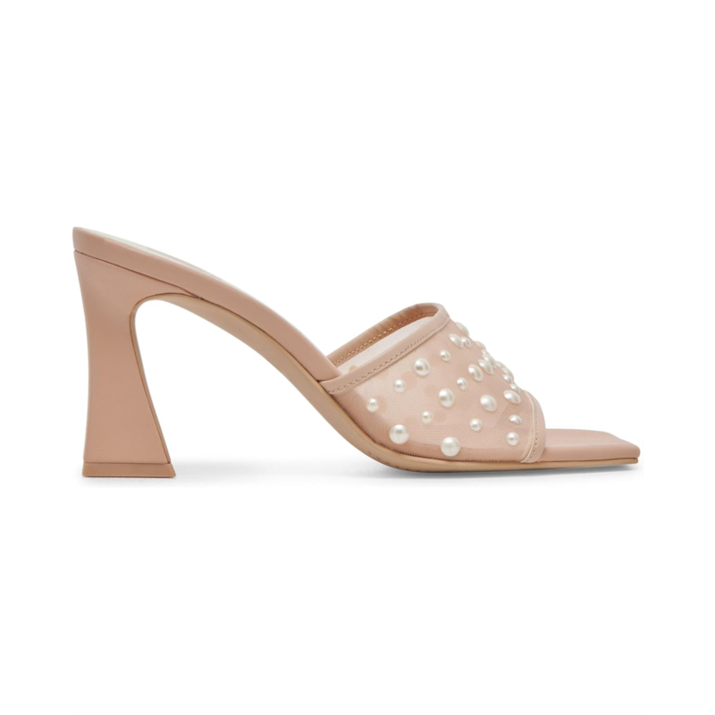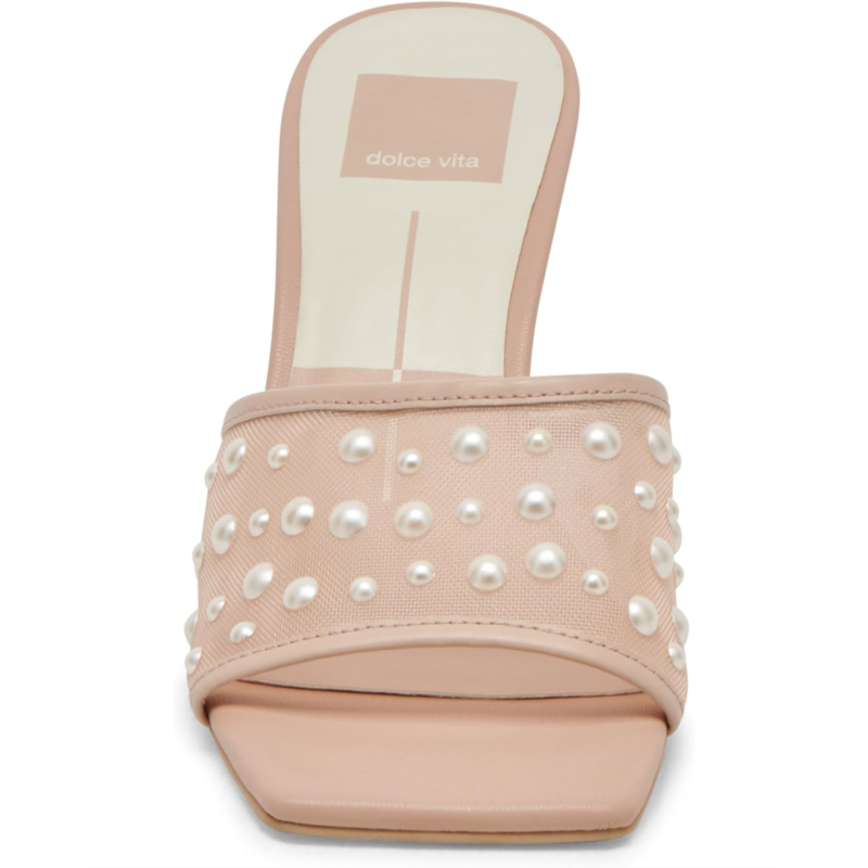 Strut in your classic yet enigmatic style wearing the Dolce Vita Narda Pearl Sandals. The slip-on footwear features mesh upper construction with pearl embellishments and high kitten heels.