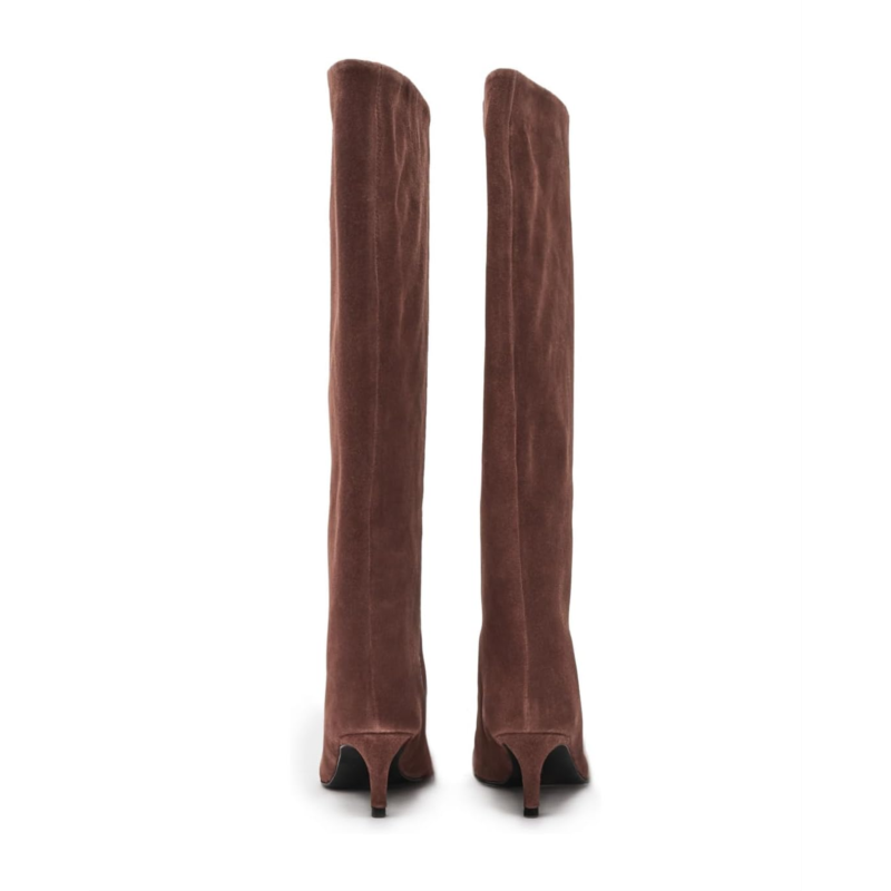 Simple yet chic, the timeless Free People Kiki Kitten Heel Boots feature buttery soft leather upper and a bold pointed toe with a minimal kitten heel and easy pull-on style. The knee-high boots come with a leather lining, leather insole, and rubber outsole. The shaft of these boots can also be worn slouched for a unique look.
