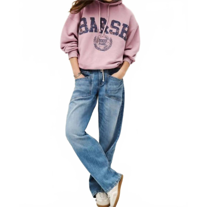 A flattering silhouette that''s suprisingly versatile.Meet the Mima Elastic Waist Jeans by ba&sh, offering a relaxed yet stylish look in classic blue. These jeans feature a wide-leg design, crafted from 100% cotton for ultimate comfort. Designed with a high-rise elastic waist and a convenient pull-on closure, they include front pockets for added functionality. They have a medium wash, are textured in style, and are perfect for laid-back outings. Care instructions specify dry cleaning to maintain quality.