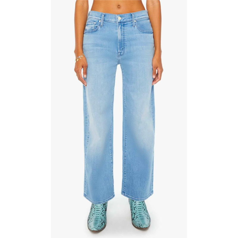 These must-have jeans are fit to perfection.Introducing The Dodger Flood Loose Straight Leg Jeans by Mother, perfect for those seeking a relaxed yet stylish look. These light-blue jeans feature a mid-rise waist with a regular fit and a loose straight leg, offering a comfortable 30-inch inseam. Crafted from 94% cotton, 5% polyester, and 1% elasthane, the denim boasts subtle whiskering and fading for that streetwear edge. Closure type - Button closure. Care - Machine wash.