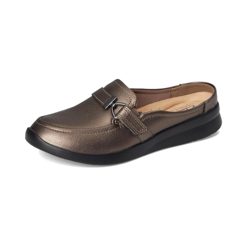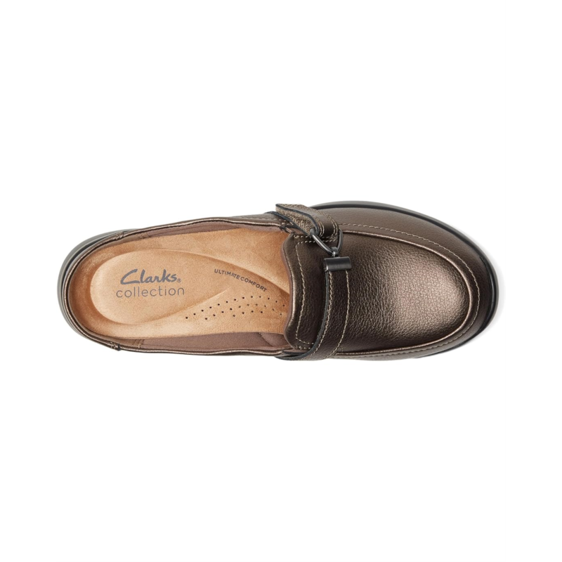 - Clarks Ellowyn Amelia is a lightweight slip-on flat with stacks of soft underfoot comfort. Clarks Collection Ellowyn Amelia arrives in premium leathers for a timeless, classic look. A grippy, wedged rubber sole keeps steps feeling flexible and free, while a super-soft foam footbed dials up your comfort with every move. Made from premium bronze metallic leather upper with horsebit hardware detailing to the front, and the ultimate Comfort foam footbed delivers lasting cushioning.