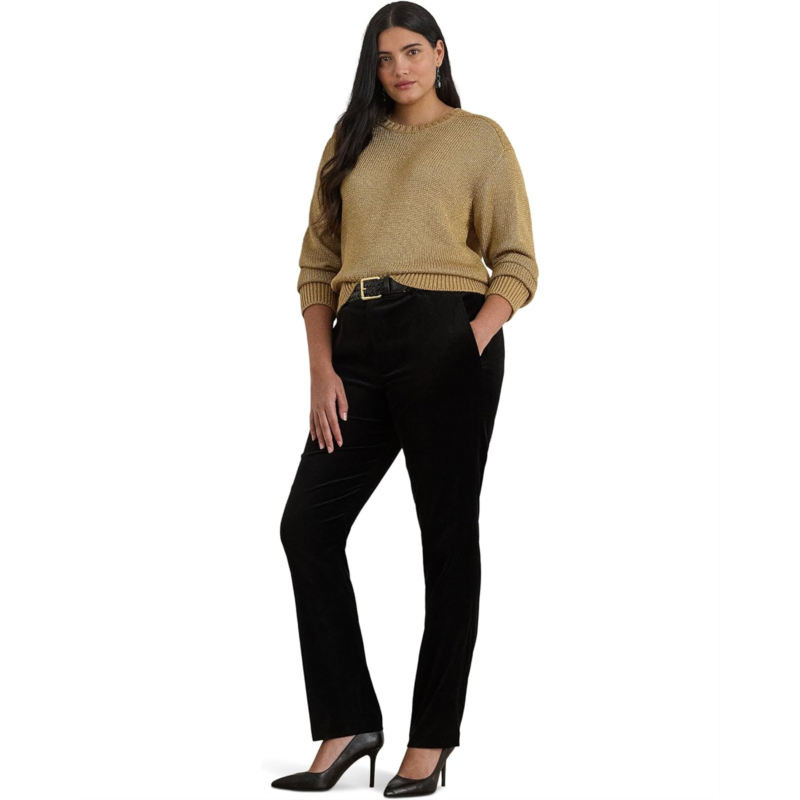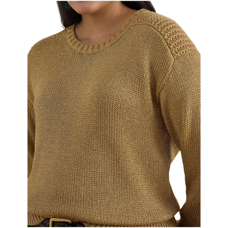 - Shimmer, shine, and elevate your everyday: This Lauren Ralph Lauren Plus Size Metallic Cotton-Blend Crewneck Sweater brings timeless polish with a modern twist. Designed with a classic crew neck and easy pull-on style, its the ultimate blend of comfort and chic sophistication. The cotton-blend fabric is infused with metallic threading, giving just the right amount of sparkle to take you from casual afternoons to stylish evenings. Long sleeves with ribbed cuffs, dropped shoulders, and rack stitching at the shoulders, cuffs, and hem add subtle texture and refinement, while the ribbed hem ensures a flattering fit that moves with ease.