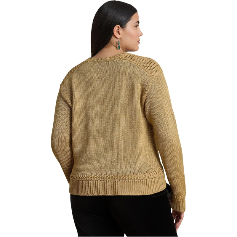 [US] POLO Ralph Lauren Womens Lauren Ralph Lauren Plus Size Metallic Cotton-Blend Crewneck Sweater