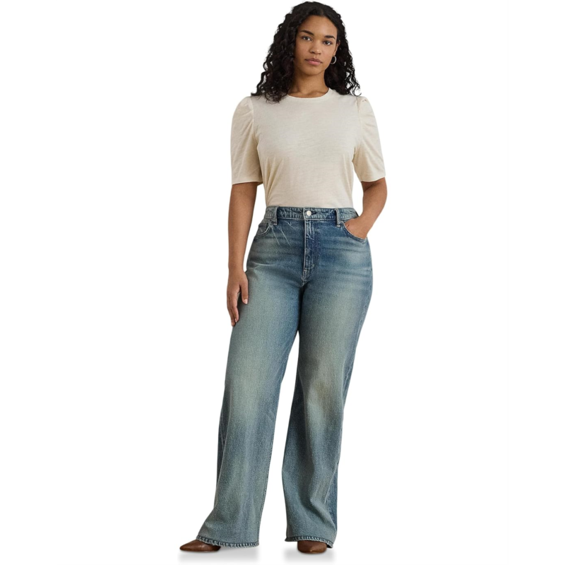 - Update your casual style statement wearing the Lauren Ralph Lauren Slub Jersey Puff-Sleeve Top. The pull-on style top features a crew neck, elbow-length puff sleeves with pleating, a straight hem, and an embroidered LRL logo at the right hem.