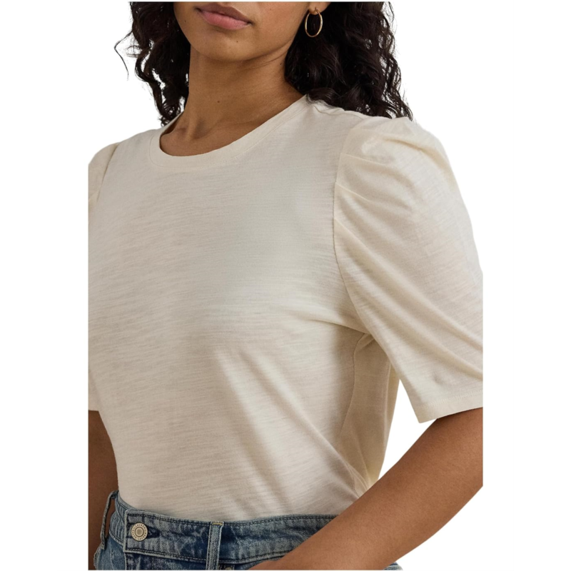 [US] POLO Ralph Lauren Womens Lauren Ralph Lauren Slub Jersey Puff-Sleeve Top