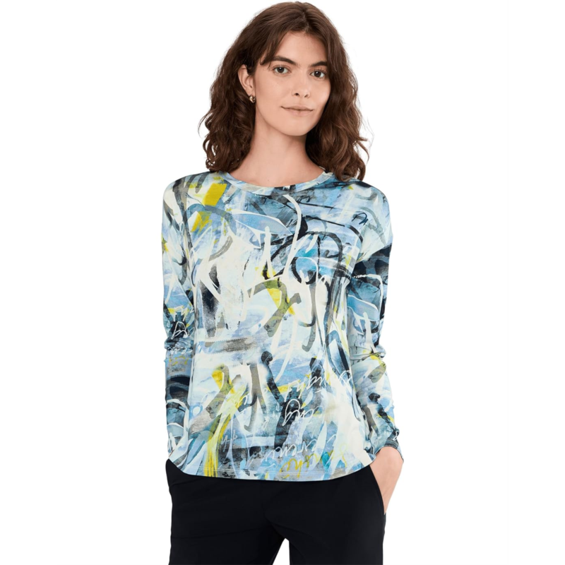 - The Elliott Lauren Collage - Long Sleeve Crew Neck Printed Top is a simple yet stylish top that brings comfort and versatility to your everyday look. This top features pull-on style, standard length, relaxed fit, and camouflage pattern allover.
