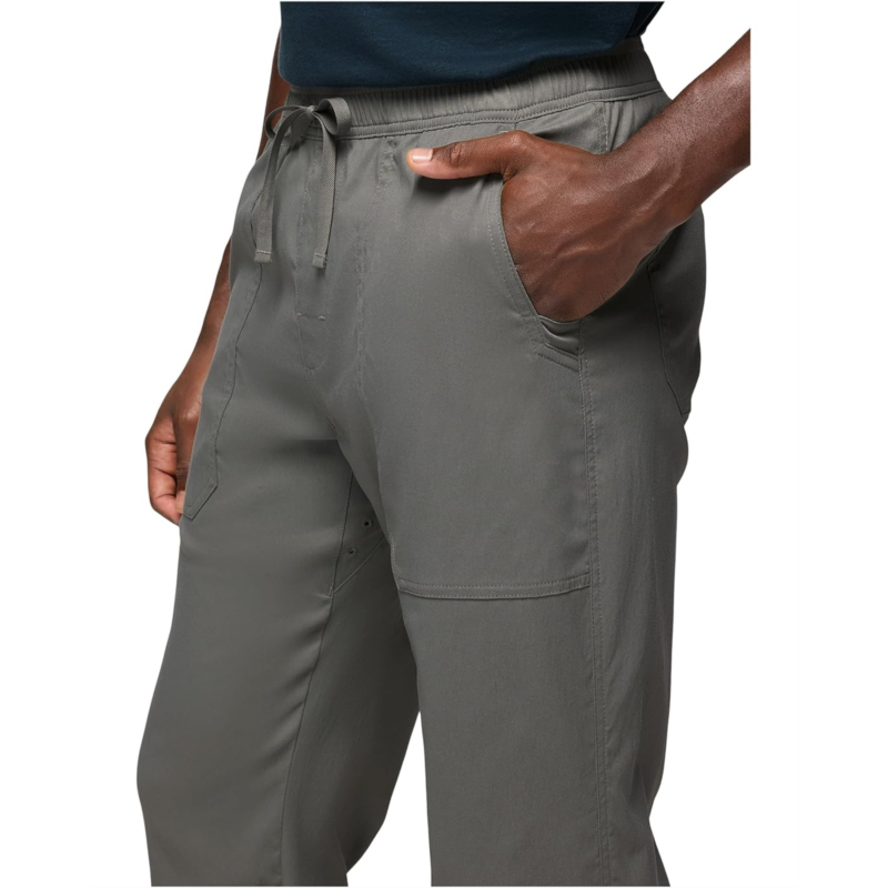 - The prAna Stretch Zion Field Pants are crafted with a mid-rise waist, elasticized waistband with an internal or external drawcord for adjustability, faux-fly, and two back patch pockets with flap on right pocket. The pants feature PFAS Free DWR finish, UPF50+ sun protection, and abrasion-resistant construction.