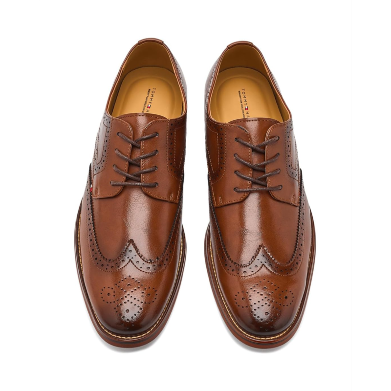 - Comfort meets modern sophistication in the Tommy Hilfiger Buford Oxfords. These stylish dress shoes are highlighted by a wingtip seen on the toe, an open lacing system, and brogue detailing. Not to mention, there is man-made lining and an added memory foam ethylene vinyl acetate insole for added comfort.