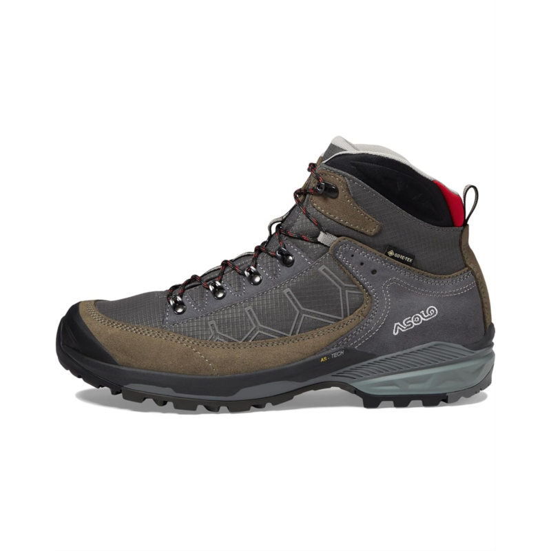- The Asolo Falcon EVO GV Boot has the ideal combination of durability and long-lasting comfort that make it ideal for hiking the trails and walking. These high-top shoes are expertly crafted with a Water-resistant suede 1,6-1,8 mm + high tenacity nylon construction and GORE-TEX Performance Comfort Footwear~ technology that offers waterproof protection to ensure feet stay dry & comfortably cool. These feature a leather upper with lace-up closure, textile lining, removable textile insole, and a rubber midsole for stability with every step.