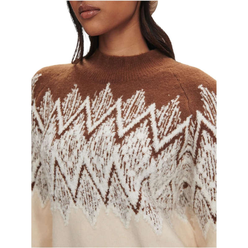 Enjoy both comfort and coziness wearing theVarleySiren Jacquard Sweater 2.0. The pulloverkorea sweater features a ribbed mock neck, a jacquard patterned upper body, long sleeves with ribbed cuffs, and a straight ribbed hem.