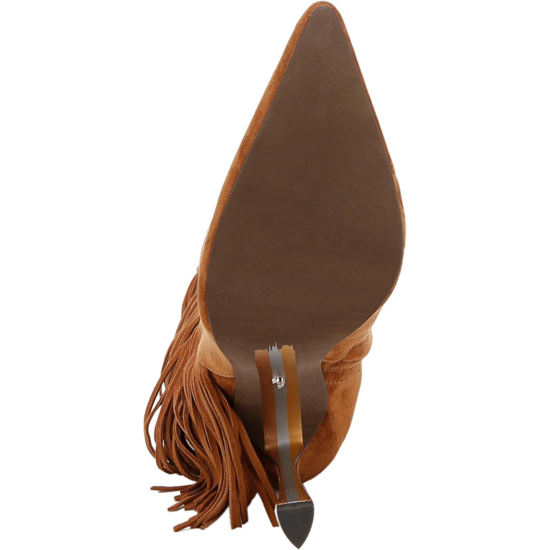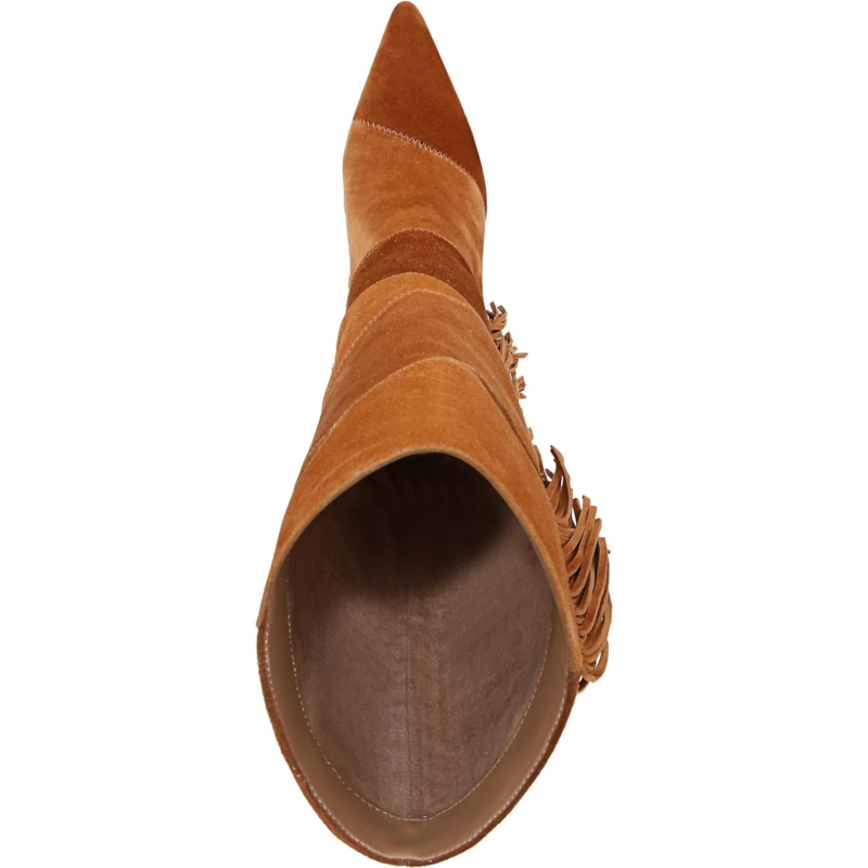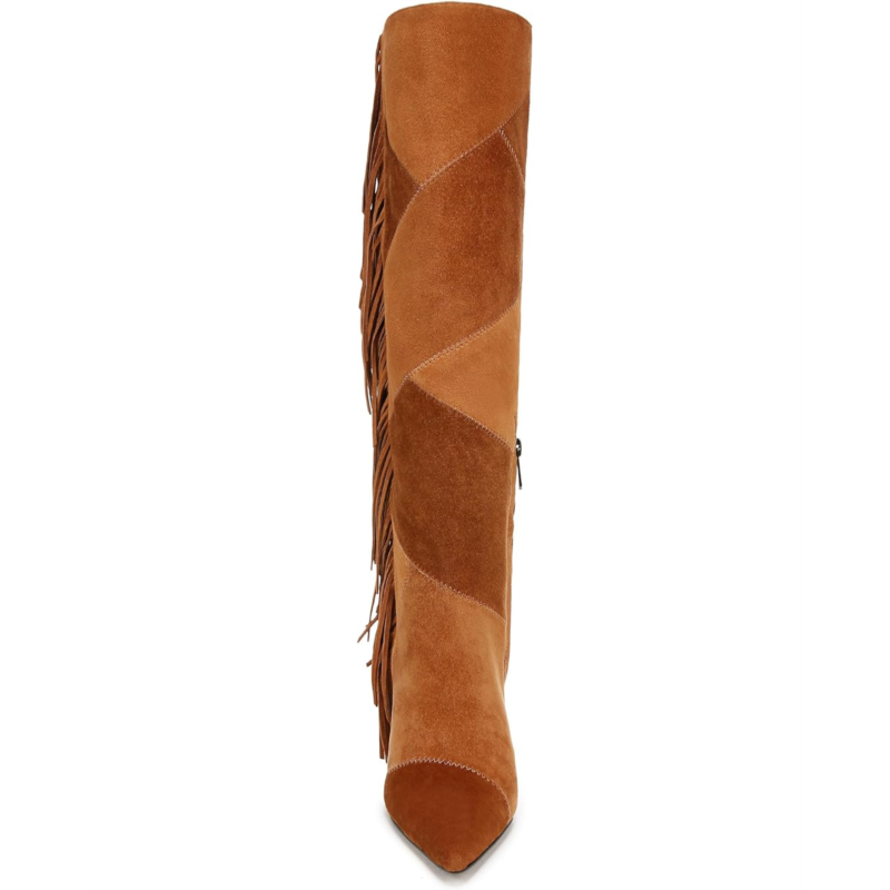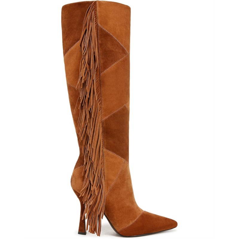 Step out and showcase your ''70s off-duty model vibes wearing the Sam Edelman Ellis. The knee-high pair is the perfect boot for a retro look with patchwork paneling and dramatic fringe details. The upper features leather construction with block heel and pointed toe silhouette.
