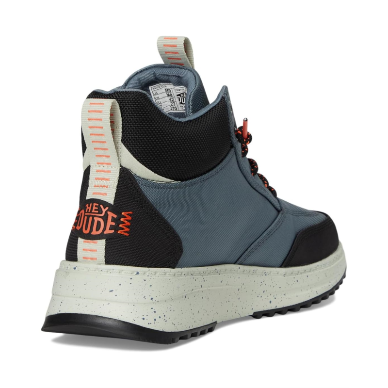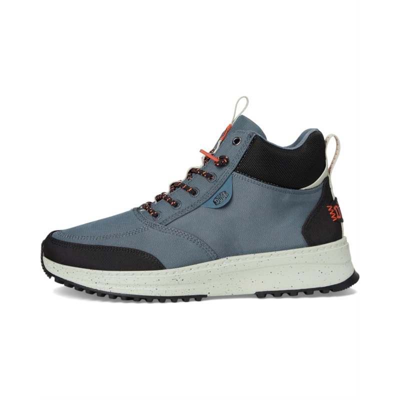 Crafted with premium water-resistant leather upper, the Hey Dude Tahoe Nylon keeps your feet warm and cozy throughout the day. The mid-top sneaker features a slip-on system and lightweight, flexible rubber outsole for comfy, seasonal style.