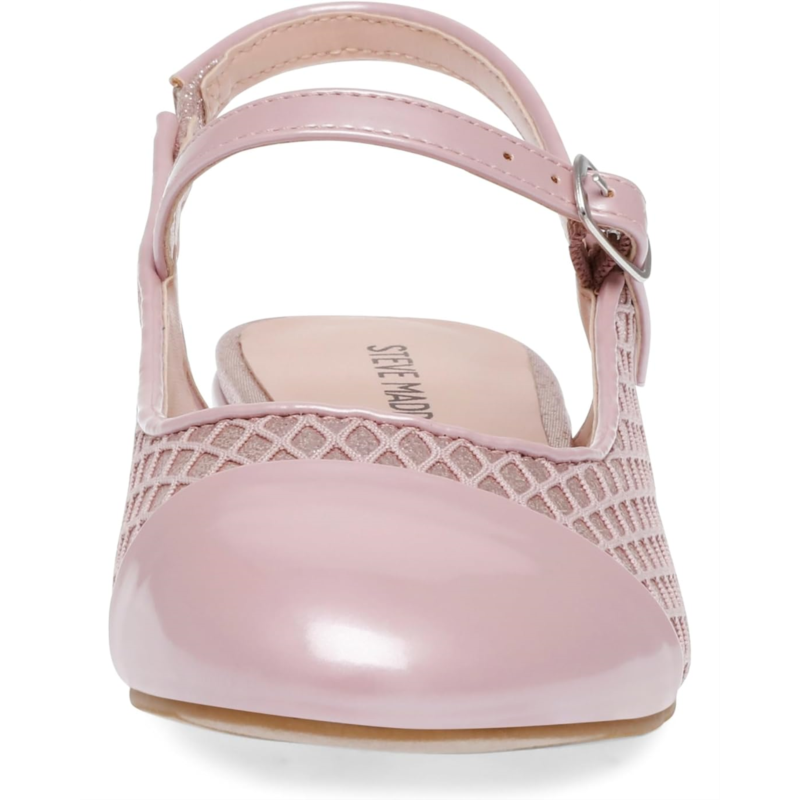 Update your litlle ones iconic party look wearing the Steve Madden Kids Belinda. These low-block heels feature Top strap with adjustable buckle and slingback strap closure, brand detailing on the footbed, and suede insole.