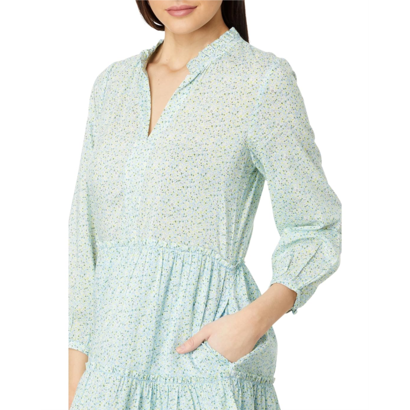 Elevate your breezy style effortlessly wearing Vineyard Vines Floral Tiered Dress that comes with an allover pretty paisley print, feminine ruffles, and an elegant A-line silhouette. The dress features a V-neckline with ruffled detailing, three-fourth puff sleeves with buttoned detailing, two side pockets, and tiered skirt that is intended to hit above the knees.