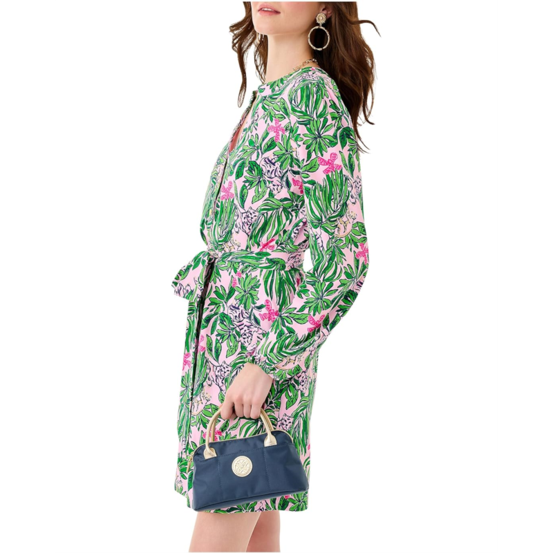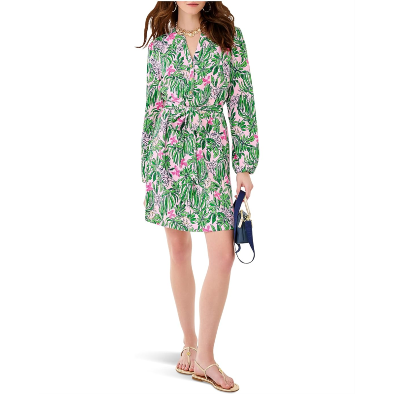 - The Lilly Pulitzer Ensley UPF 50+ Dress brings sunny-day magic to everyday moments with its easy, breezy regular fit and flattering above-the-knee silhouette. Designed with a chic notch neck and classic long sleeves, it blends polished charm with relaxed comfort. The pull-on style keeps your routine simple, while the button-front detail and self-tie waist let you adjust your look from laid-back to luxe in seconds. With built-in UPF 50+ protection, this easy-fit pullover dress proves that style and sun safety can shine together.