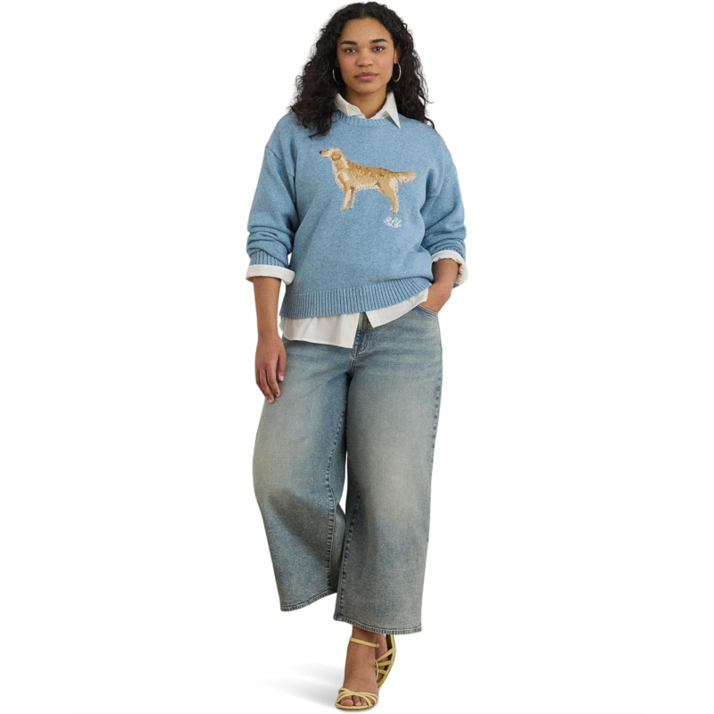 [US] POLO Ralph Lauren Womens Lauren Ralph Lauren Plus Size Intarsia-Knit Golden Retriever Sweater