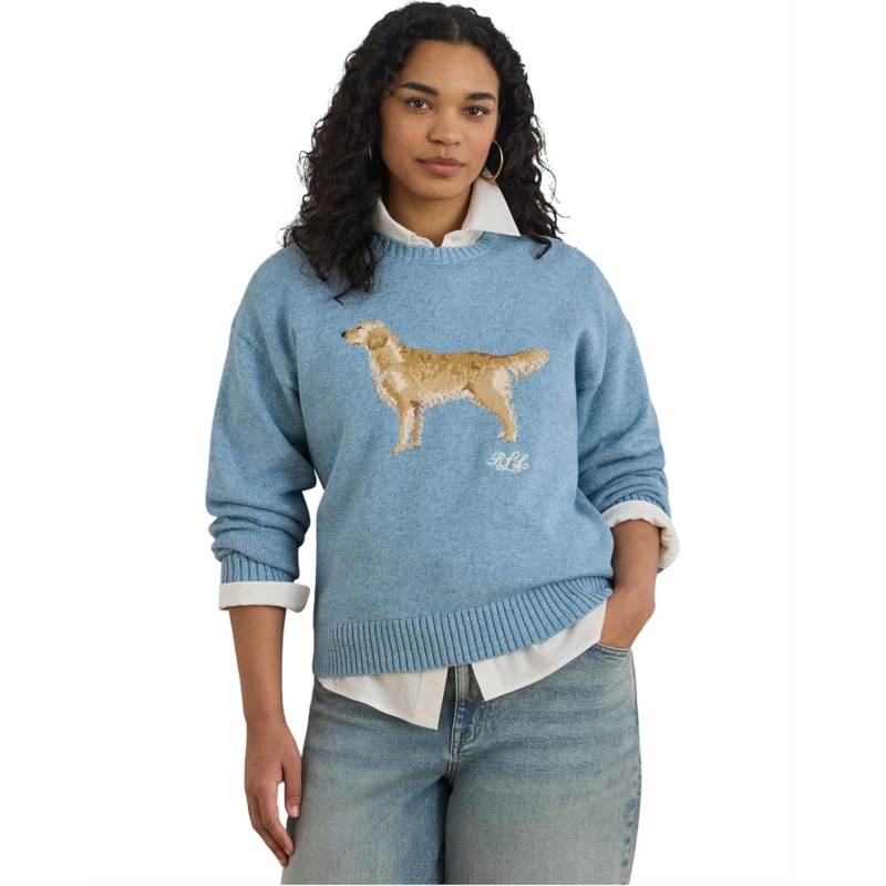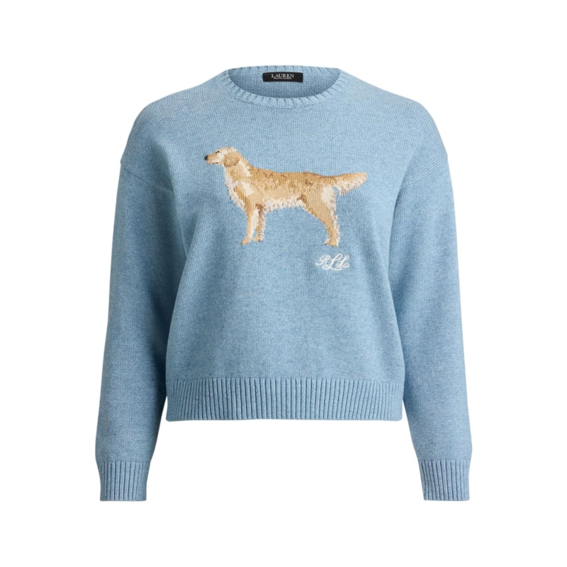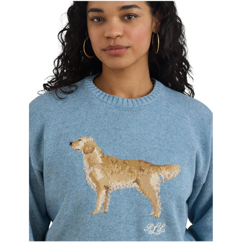 - Define elegance and grace wearing the Lauren Ralph Lauren Intarsia-Knit Golden Retriever Sweater. Knit with combed cotton for a soft hand, this ribbed crewneck sweater features an intarsia-knit golden retriever and an embroidered script LRL logo at the chest. A relaxed-fitting silhouette and dropped shoulders enhance its cozy feel.