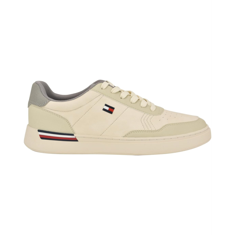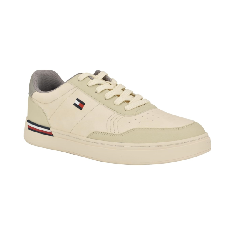 - The Tommy Hilfiger Jaran Sneaker has an iconic striping design in the sole, and the round toe silhouette allows both a casual or sporty look. With faux suede upper and recycled polyester lining, the footwear has memory foam insole that provides added comfort. This style is also built to be more eco-friendly with 3 points of sustainability: recycled materials used within the lining, sock, and outsole.
