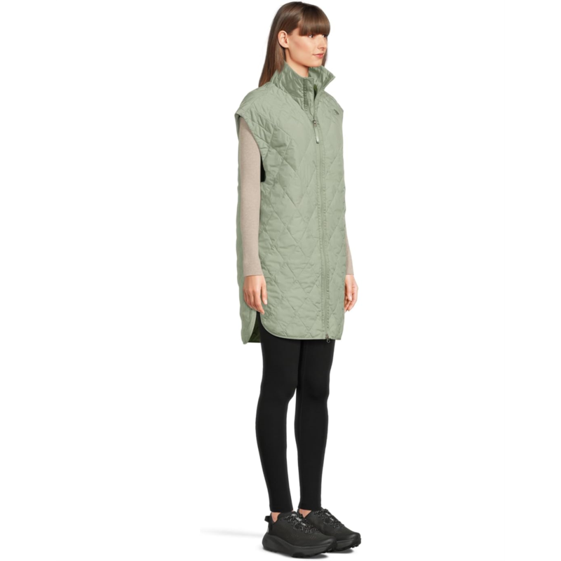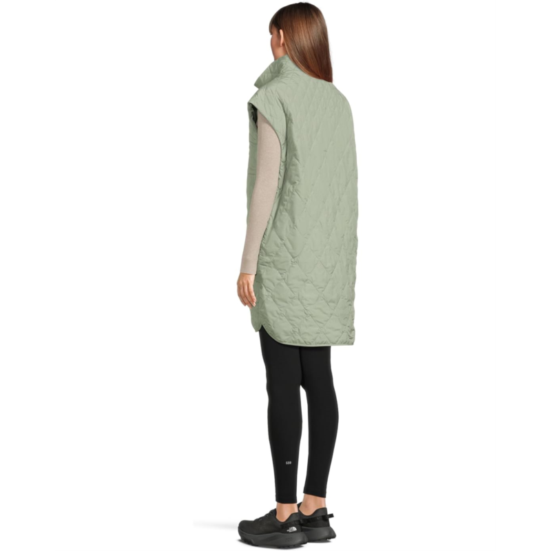 - Designed with a standout diamond quilting design and THERMOBALL insulation, The North Face Diamond Peak Insulated Vest helps keep you warm even in wet conditions. Built for the elements from trail to transit, this quilted sleeveless vest is crafted from wind-resistant WINDWALL fabric with a water-repellent finish that keeps you comfortable and dry all day. Offering an oversized fit, this zip-up vest is styled with oversized dropped armholes, a roll-over collar, and a slightly curved high/low hem with side slits. Featuring a heat transfer logo on the left chest, this windproof vest will become your go-to choice when going out in the cold.