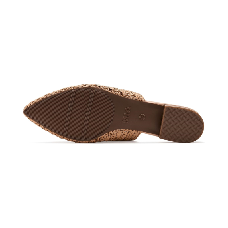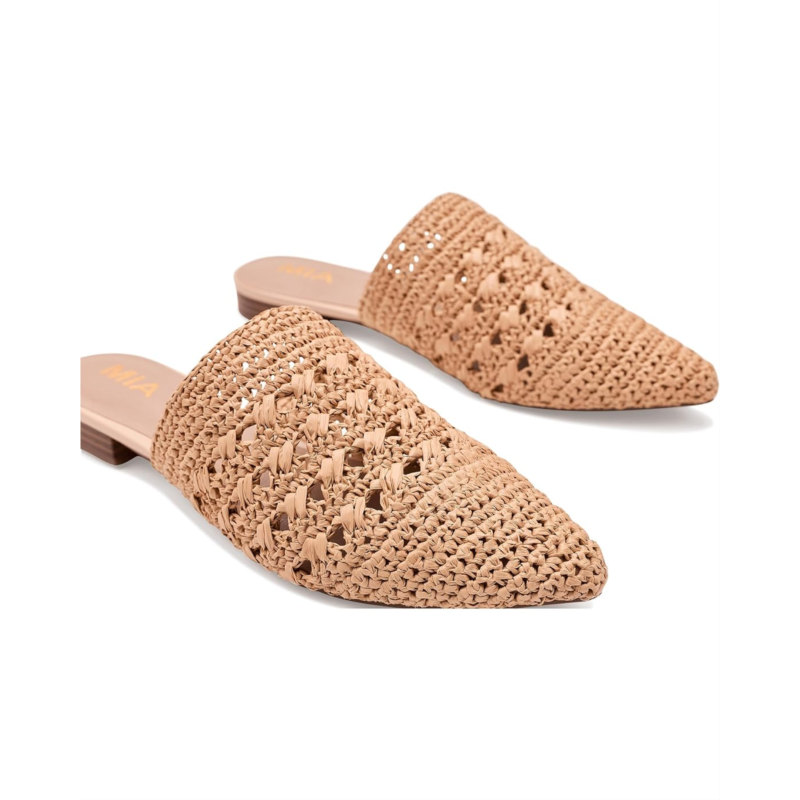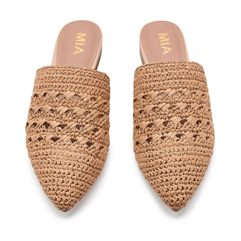 - Slow-crafted elegance meets the MIA Jany mules. These woven sandals are designed with a woven upper, a faux leather insole, and a raffia lining. These slip-on sandals are woven to perfection, so you can slip them on when you are on the go.