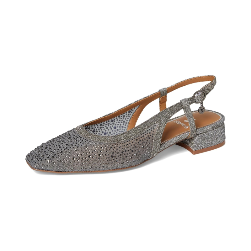- This year-round womens mesh/fabric/rhinestones square toe pump has a memory foam+latex insole and synthetic lining. This style also features a buckle closure on a 1 inch heel.