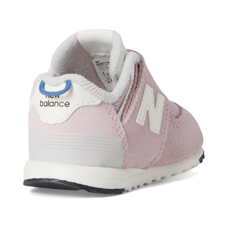 - Style your tiny trendsetter in the New Balance Kids 574 New-B Hook & Loop. Designed with a breathable mesh upper and ultra-durable rubber outsole pods, these sneakers are built to keep up with every wobbly adventure. The hook-and-loop closure ensures a snug, customizable fit, while the flexible construction a]nd generous toe box support natural movement and growing feet. With heritage design cues from the classic 574, these kicks deliver timeless style and everyday comfort in a perfectly downsized package.