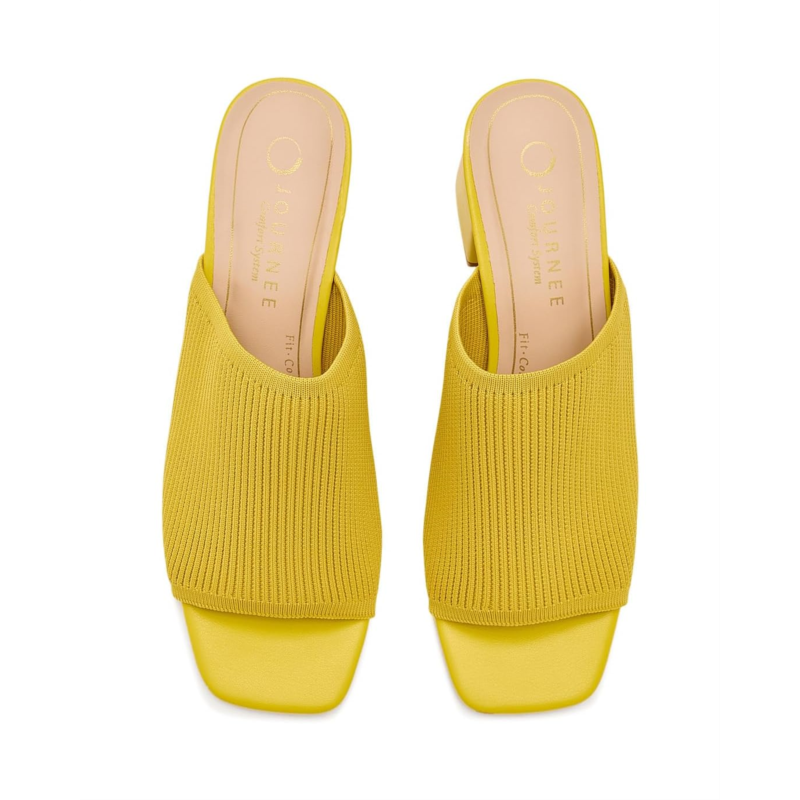 - Introducing the Journee Collection Lorenna Mule, an ultra-sleek look crafted for seamless day-to-night transitions. This slip-on silhouette is designed with knit fabric uppers and a footbed lined with a padded insole. The square-shaped toe and covered block heel add a stylish touch to the overall appearance. With its versatile design, this slip-on style is poised to become a favorite in your rotation.