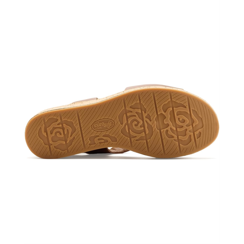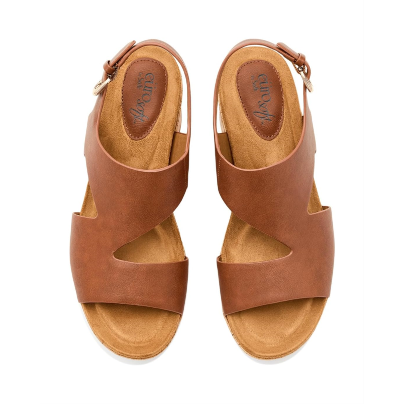 - The EuroSoft Kryss sandals are slingback heels with a faux leather upper, a chop-out pattern, an adjustable buckle, and cork-wrapped wedge heels. These heeled sandals are crafted with a rubber insole and a faux suede lining. Their adjustable buckle closure ensures a comfortable fit.