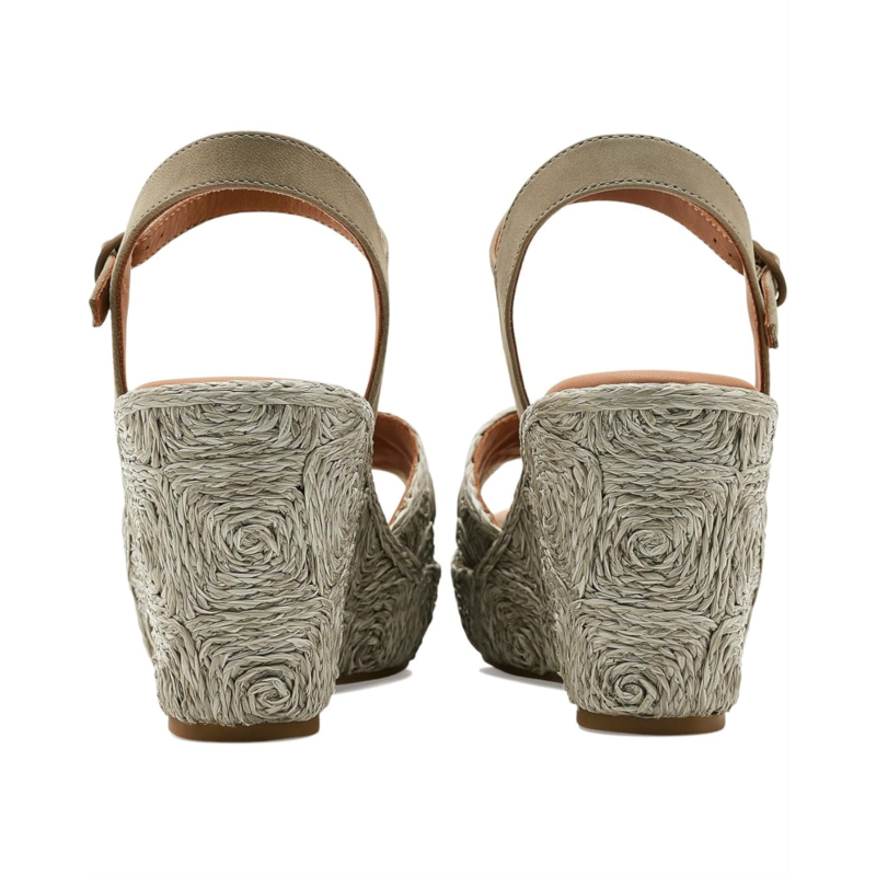 - Leather and raffia upper.