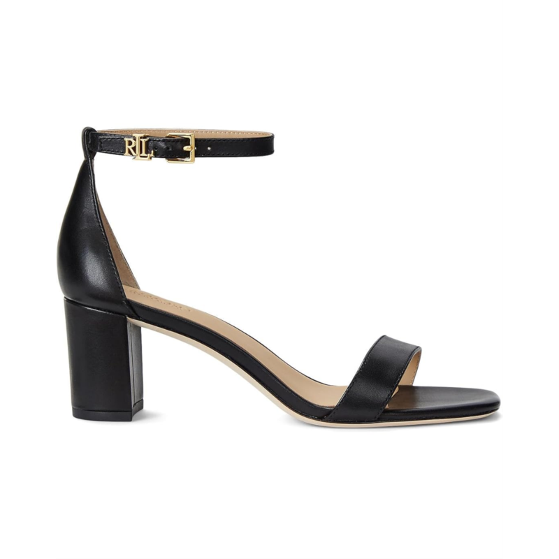 - Discover the perfect balance between style and comfort with the LAUREN Ralph Lauren Logan Sandal?an elevated staple designed to captivate. Revel in leg-elongating allure with a sleek heel, adorned with the iconic LRL brass-finished keeper. Embrace comfort and style with an open toe and a secure buckled ankle strap.