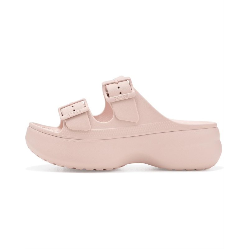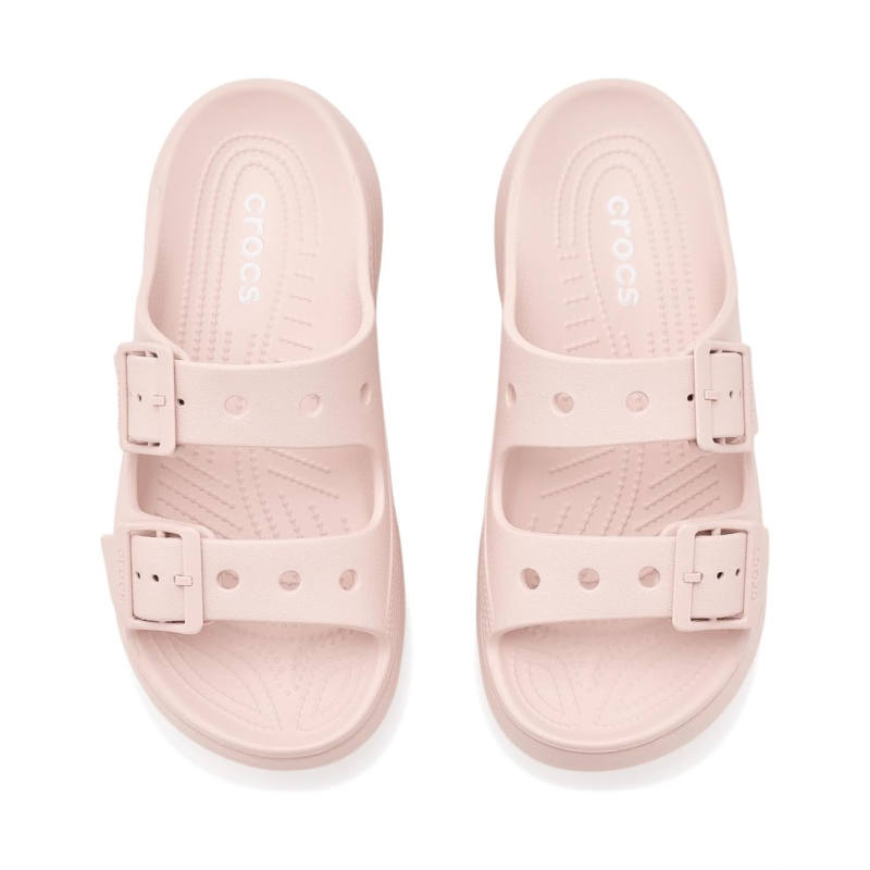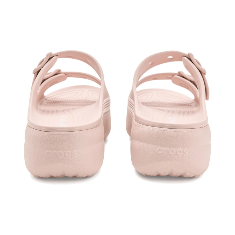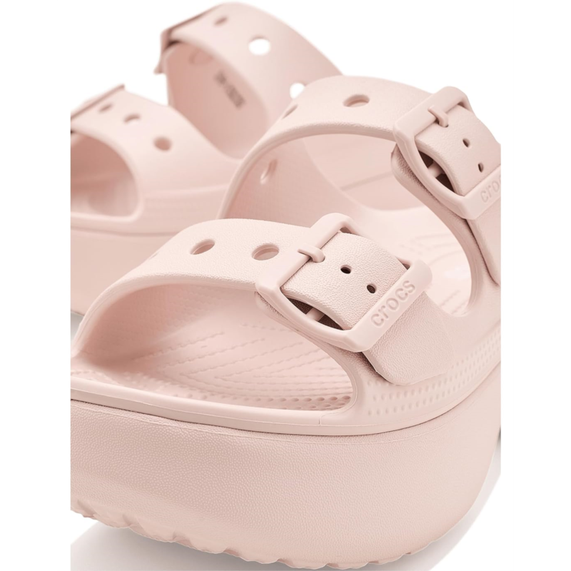 - The Crocs Saturday Platform Sandals take the everyday ease and lift it up with a bold platform design. Featuring dual adjustable buckle straps for a secure fit and lightweight Croslite foam cushioning, it blends casual comfort with a fashion-forward edge. Easy to wear, easy to clean, and versatile enough for any outfit, its the perfect sandal to take your weekend style to new heights. Crafted from ethylene vinyl acetate (EVA) upper, and insole, this pair of sandals features an open, round-toe design, slip-on style, and brand detailing on the footbed.