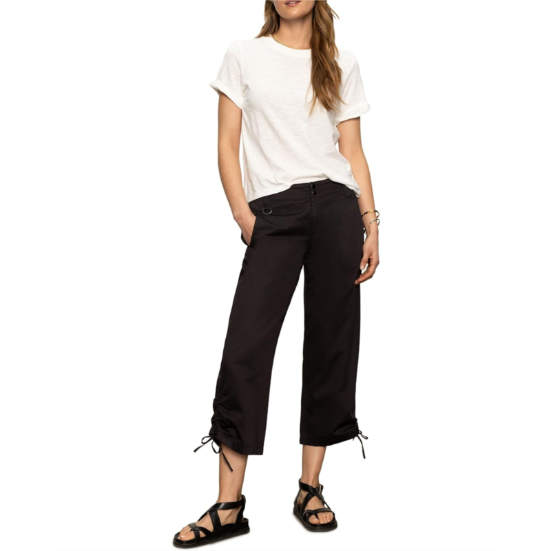 Rugged charm for your every day explorations, Sanctuary Utility Capri. Designed with a regular fit and straight-leg silhouette, these capris offer a mid-rise waist with a zip-fly and button closure, keeping your look sleek and structured. The cinched leg design with angled seam detail adds a modern edge, while D-ring accents and belt loops give you endless styling options. Crafted from a durable, non-stretch fabric, these capris promise all-day comfort with a structured feel. With four functional pockets, utility meets versatility-because style should always come with substance!