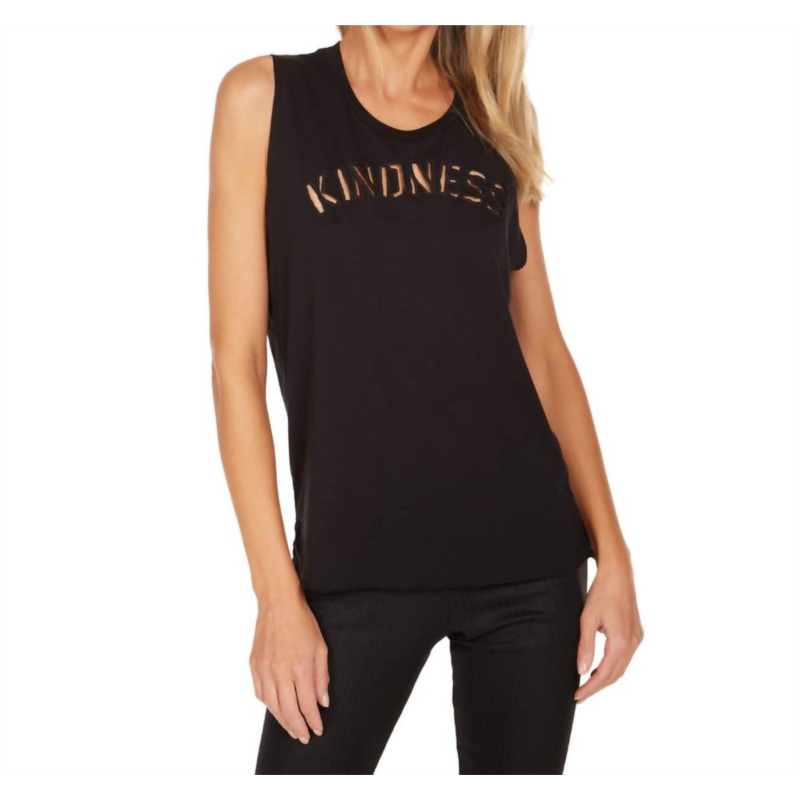 MICHAEL LAUREN dom muscle tank top with kindness cutout in black
