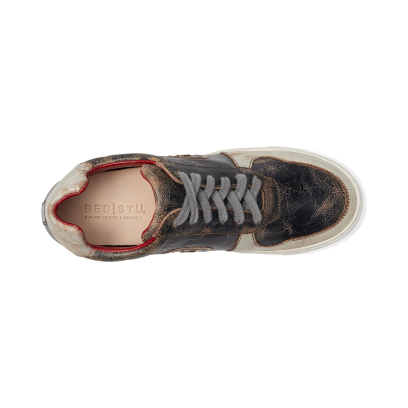 - Discover a blend of classic charm and modern innovation styling the Bed Stu Andromeda. Crafted from premium 100% vegetable-tanned leather, this mid-top sneaker features a breathable red leather lining and cushioned footbed for ultimate comfort. The hidden heel adds a subtle lift, enhancing your style while maintaining comfort. With its textured rubber sole and round toe design, the Andromeda ensures durability and a secure fit. Lace-up and experience the perfect combination of timeless style and contemporary flair with the Bed Stu Andromeda.
