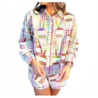 QUEEN OF SPARKLES daiquiri cotton button up long sleeve blouse i...