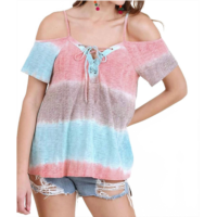 Umgee lace up cold shoulder color block top in mint mix