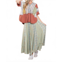Blue Velvet womens blocked button detail top in charcoal combo