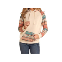 Rock & Roll Denim contrast sleeve hoodie in cream turquoise