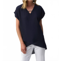 Joseph Ribkoff v-neck lightweight asymmetric top in midnight blue